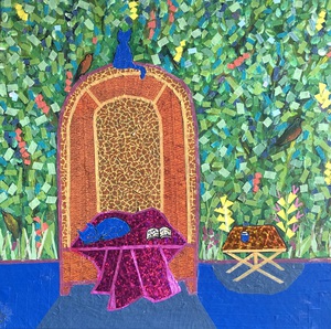 20202 Blauwe katten en een strandstoel, opgebouwd uit stukjes tape