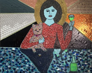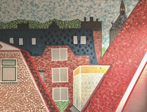 Mixed media; schilderijen opgebouwd uit kleine stukjes tape.
